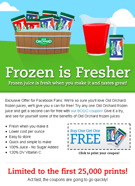 Old Orchard is giving away a rare buy one get one free coupon to the first 25,000 to